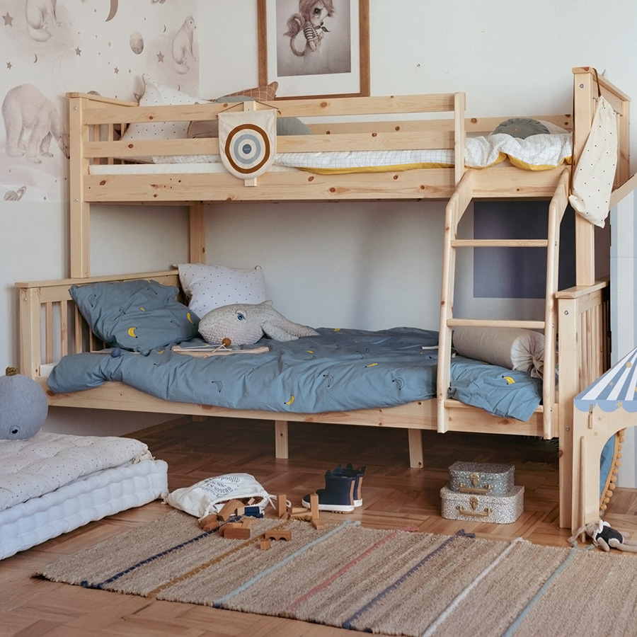 Een prachtige familie stapelbed in Scandinavische stijl uit de Collet collectie van Inmondo. Dit stapelbed is een uitstekende keuze voor ouders die een gezellig en harmonieus interieur willen creëren – ideaal om samen te slapen, te spelen en op te groeien.