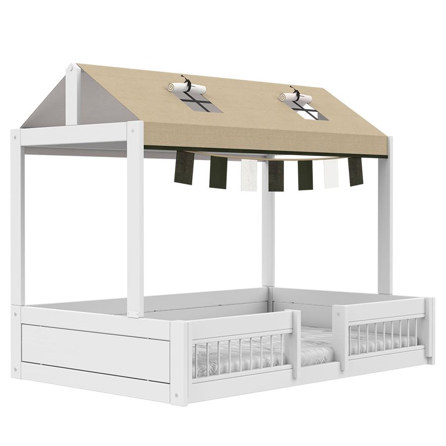 Het bed wordt geleverd inclusief dakconstructie en een stofdak met slinger uit de Panda Paradise collectie van Lifetime Kidsrooms. Uiteraard is de dakconstructie eenvoudig weer te verwijderen. De uitvalbeschermers voorkomen niet alleen uit bed rollen maar geven het bed ook een veilig gevoel van beschutting.