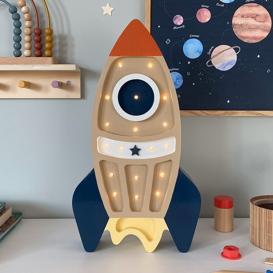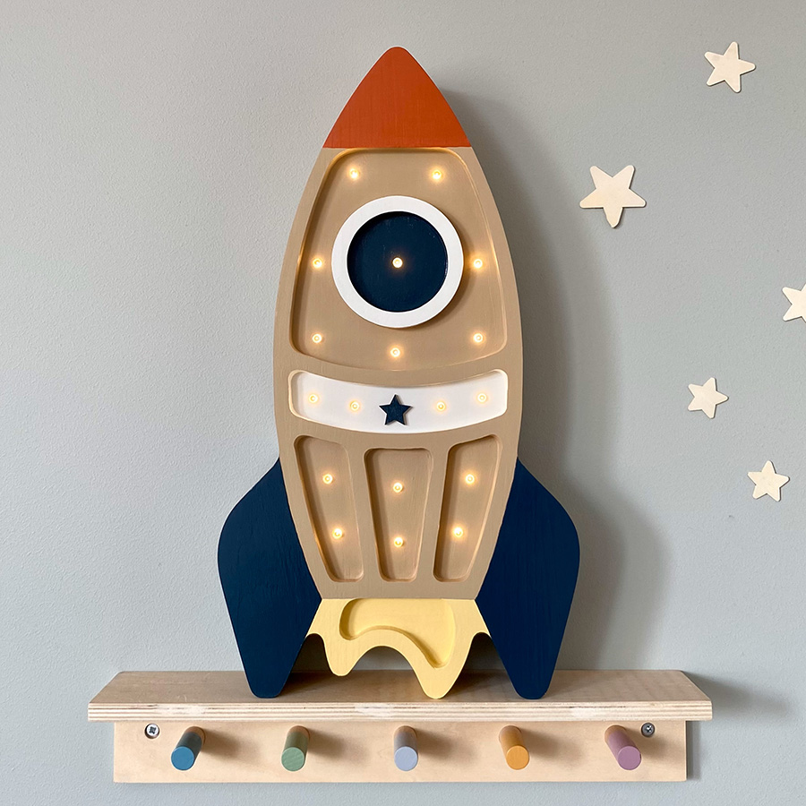 Het unieke ontwerp van dit kindernachtlampje trekt de aandacht en creëert een magische sfeer in de kamer. Je kind zal dolblij zijn als de raket ’s nachts zijn of haar dromen verlicht.