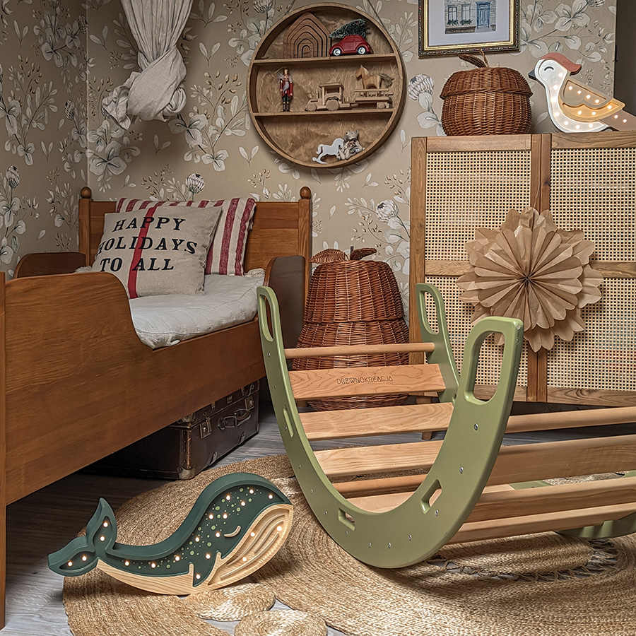 De lamp is niet alleen functioneel, maar ook veilig voor kinderen. Gemaakt van hoogwaardige materialen en beschilderd met veilige acrylverf die wordt aanbevolen door de Poolse Vereniging voor Allergologie, kun je er zeker van zijn dat je kind veilig en onder een uniek licht zal slapen.