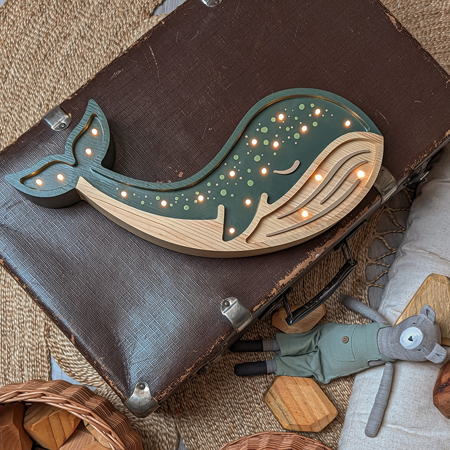 Peekaboo handgemaakte houten (nacht)lamp Walvis – Groen